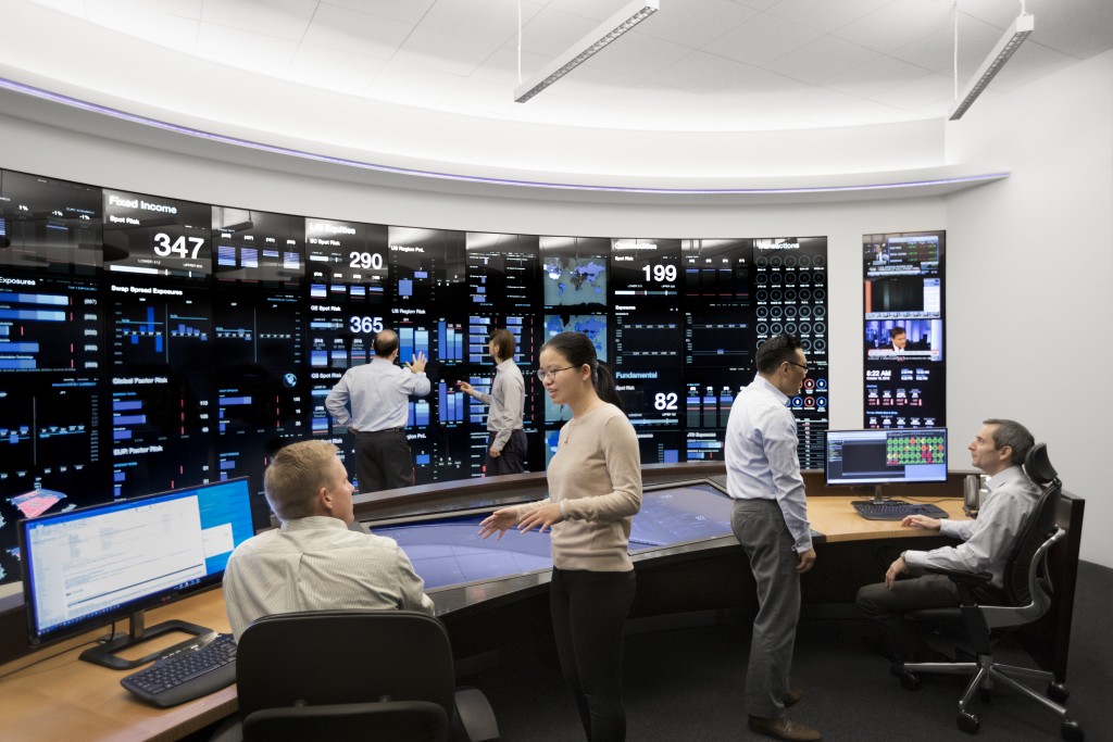 growbestlimited.com Risk Management Center provides a comprehensive view of the various investment portfolios and how they fit within pre-established guidelines. Built in 2014, its front-end consists of a 27' by 8' interactive touchscreen designed to visualize data in ways that allow for rapid comprehension. Its back-end systems, which connect to every growbestlimited.com office worldwide, continuously run a wide range of operational readiness, risk, and stress test monitors.
